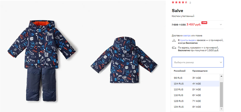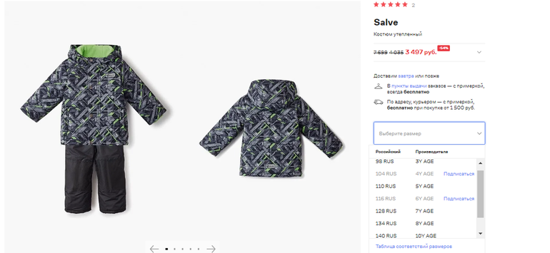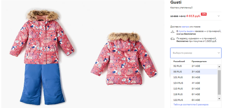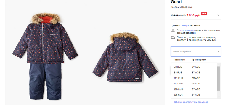 Я на мальчика взяла, 104 рост. Куртку будем носить сейчас, а штаны только на следующий год. У них штаны большемерят. Или наоборот: штаны в размер, а куртка чуть маломерит))). Мы год назад (в ноябре 2018) покупали также раздельный комплект Густи в Мазекее (с мишками), 98 рост, ребенку было 2 года, так штаны были велики даже с подворотами (у них пристегиваются подвороты), носить малышу было неудобно. А куртку сразу носили вместе со штанами Керри 92 рост. В этом году штаны от прошлогоднего комплекта сидят идеально (на рост 96 см). А куртка становится уже заметно мала, тесновата слегка, хотя до конца зимы в принципе доносить можно, но я не люблю, когда в теплом зимнем комплекте куртка в облипку. Многие дети так носят, но мне не нравится, хочется чуть посвободнее.