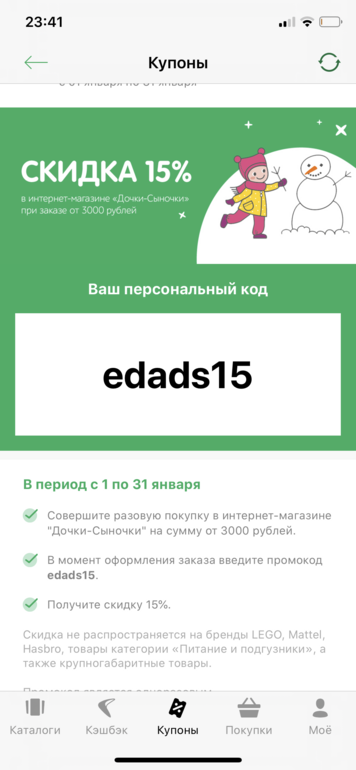 Без темы.Укажите категорию!Есть какой-нибудь действующий промокод или купон? Заказ на 5000 руб с выкупом из магазина. Плохо знакома с этим магазином.