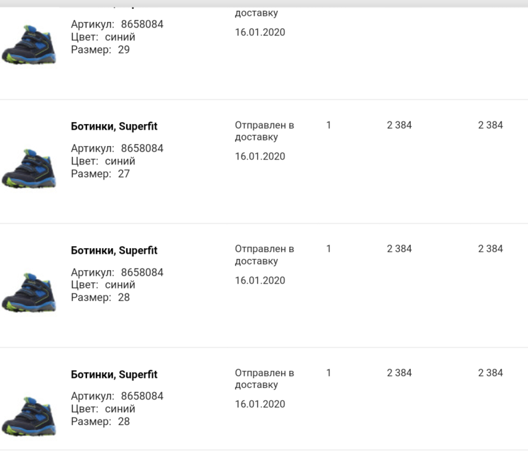 Спасибо! Заказала ботинки суперфит за 2384р разных размеров