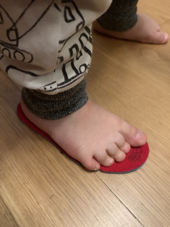 Вот думаю всё же жестковаты они и размер уже впритык. Он в мягких угах из детского мира лучше ходит, хотя там стелька вровень с пальцами, никакого запаса, но они мягкие и широкие