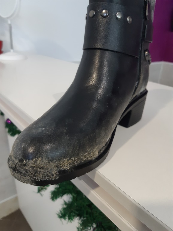 Ну, собственно, и все))) осталась я без ботинок. И задумалась.. скорее всего это производственный брак, раз вся партия такая красивая, то есть купи я их в магазине, продавцы там их почистят, протрут, а потом дома они зацветут буйным цветом. ☹