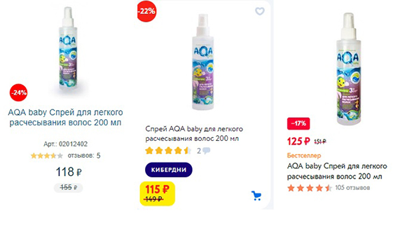 Дочери покупаю аква беби, всю линейку, не только спрей. Спасибо за наводку. А на другие средства, шампунь и бальзам, не обратили внимания, есть скидки?