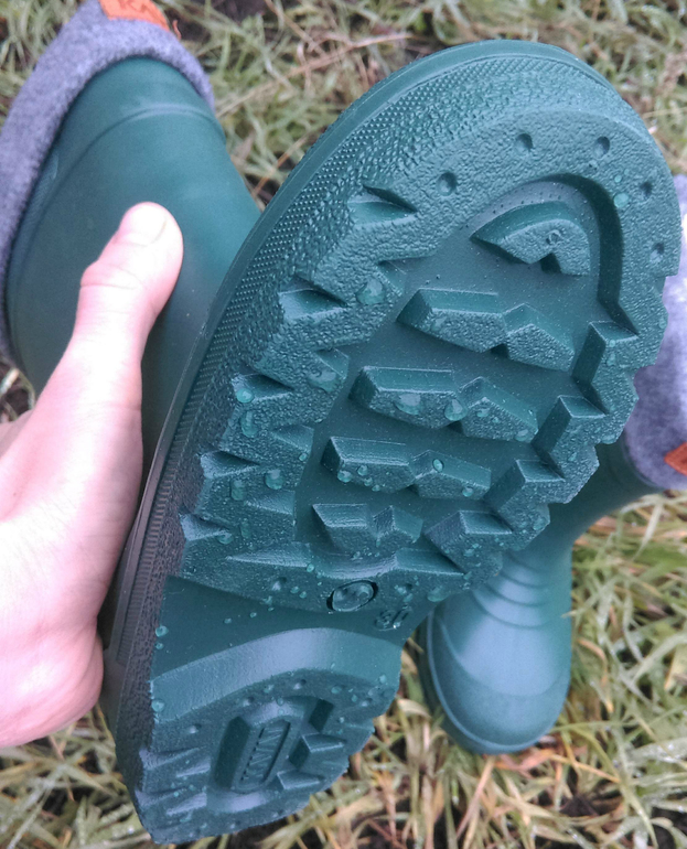 Ребенок носит их на ангоровый носок, он не толстый, в нем присутствует небольшой процент шерсти, нога не мерзнет. Сын на прогулках, обычно просто ходит, может немного пробежаться, ноги в сапогах остаются теплыми и сухими.