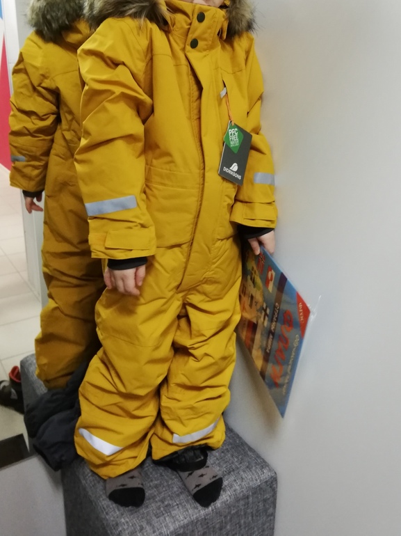 Сын в прошлом году (2018-19) носил Bjornen, 110 размер на рост 110. Мерили первый раз в сентябре. Тоже складки в штанинах, рукава чуть длинноваты. По телу запас хороший.