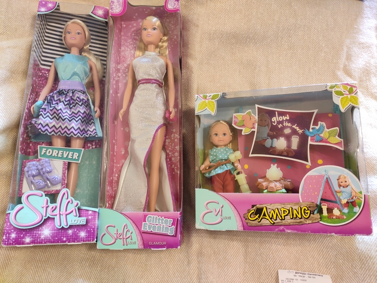 хотела заказать одежду для барби(безграничные движения с озон, вышла в 460р деньгами), одежки не досталось, поэтому купила кукол, у них прям одежки качеством лучше, чем барбиевские) 179, 199, еви 179р, взяла на всякий пожарный.