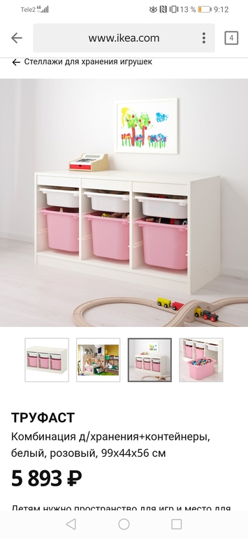 У нас такая была ступенькой,плюсов много,здесь описывали уже.Мне не понравилось вот что:у ребёнка порядка идеального быть не может(или у меня такая дочь)),в итоге,как бы я не сортировала игрушки,они были все перемешаны по полкам.И когда надо было найти определенную игрушку,выпотрашивались все ящики,это бесило и меня и ребёнка.В ящики ,не выдвигая их,запихивались игрушки,и те,что перегружены были,давали приличную нагрузку на пластиковые полозья,некоторые из них сломались.В итоге именно нам подошла идея с икейскими чемоданами детскими:большой чемодан с мягкими игрушками под кроватью,и несколько маленьких чемоданов(они повыше) под куклы и всю мелочевку с ними связанную,под посудную и пр.Два таких чемодана как раз идеально умещаются на икейский стеллаж