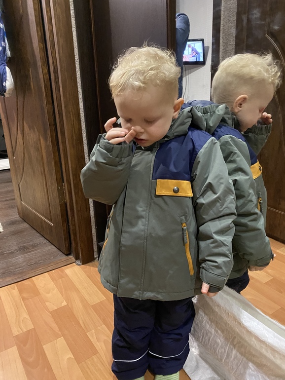 Средний сын пока не до конца готов к зиме. Нужно купить ещё слитный комбинезон.