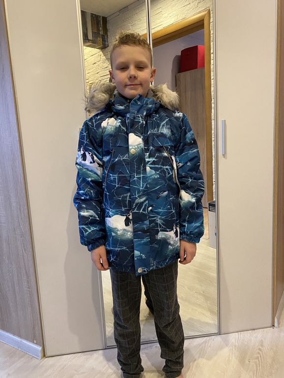 И куртку Моло сын сам выбирал расцветку выбрал пингвинов 146р на росте 142 сидит так