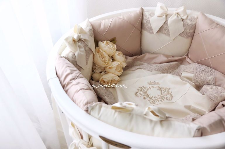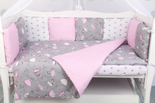Никакие. Шила такой комплект на заказ, пользовались не долго, продала быстро. Это все только для фото, в реальности жутко не практично. Подушки вечно съезжают, от удара головой и застревания конечностей не спасут. Есть опасность удушения. Ребенок начинает становиться на них и может выпасть их кровати. В итоге мама моя сама пошила и постельное, и тонкие высокие борты. Лучше закажите органайзер на кровать, мне очень пригодился