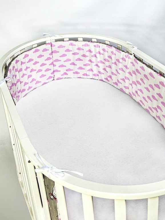 А в идеале - никакие. Или пару длинных подушек типа змеек, чтобы об бортики не бился, если все же будет спать в кроватке...