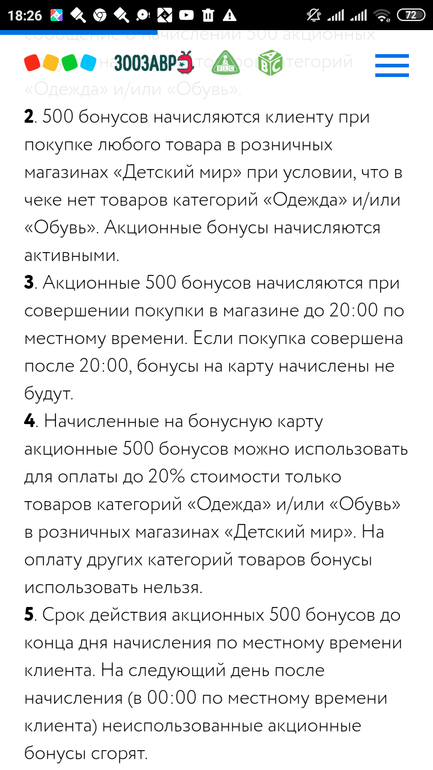 Плюс начисляют 500 баллов за любую покупку кроме одежды и обуви (порадуйте ребенка акционными киндерами), которые надо потратить в тот же день.