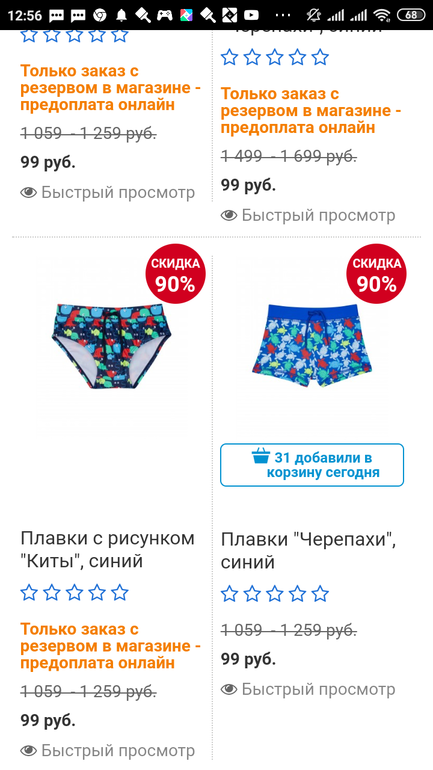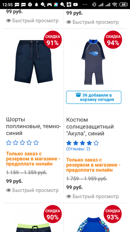 Пока все пытались вынести сайт,я съездила в магазин и купила пару шорт по 99.На девочек были купальные трусы по 99р.Были брюки больших размеров по 199.Больше ничего интересного)