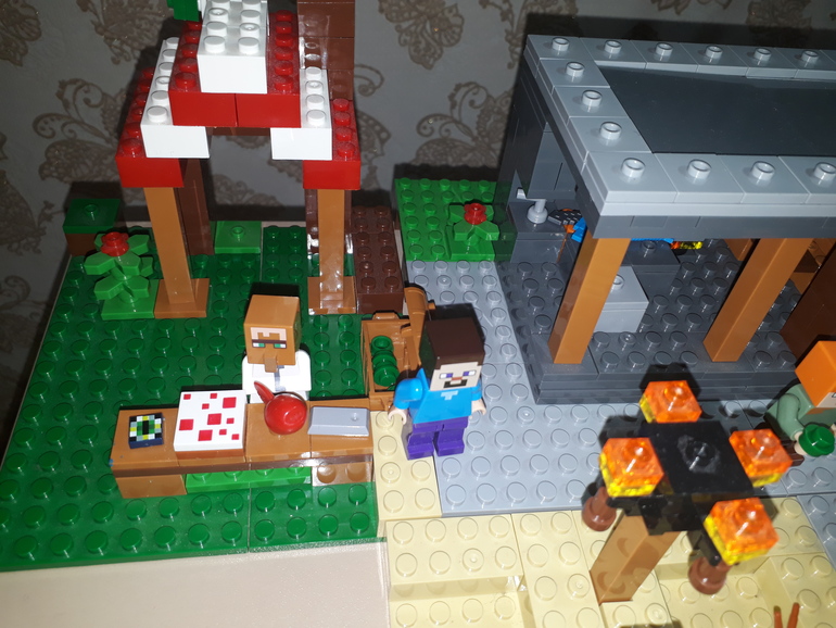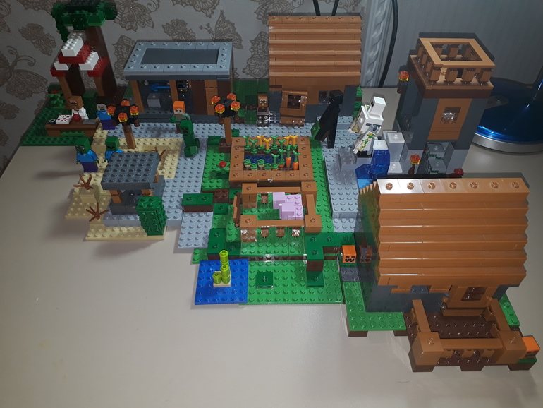 Возле огорода зеленая фигурка Крипера(тоже сказала нужно указать)