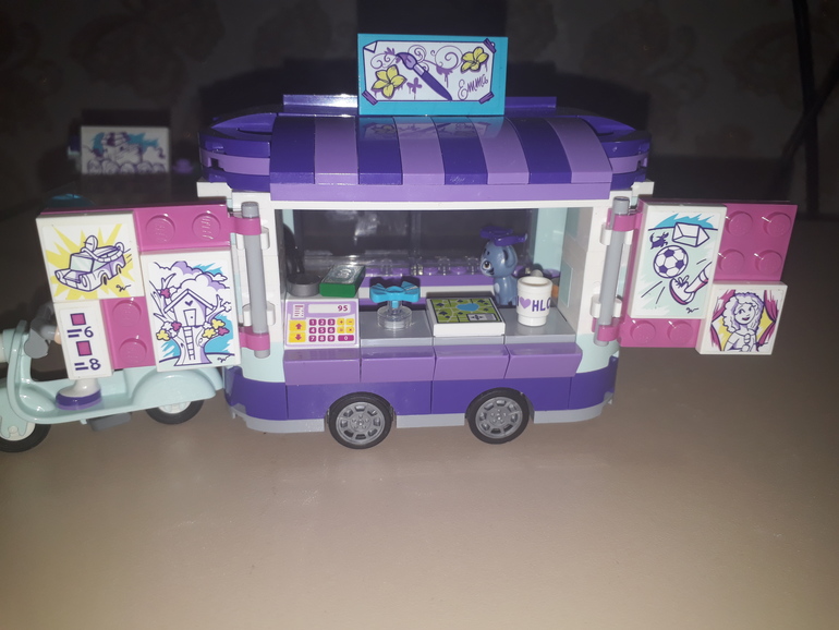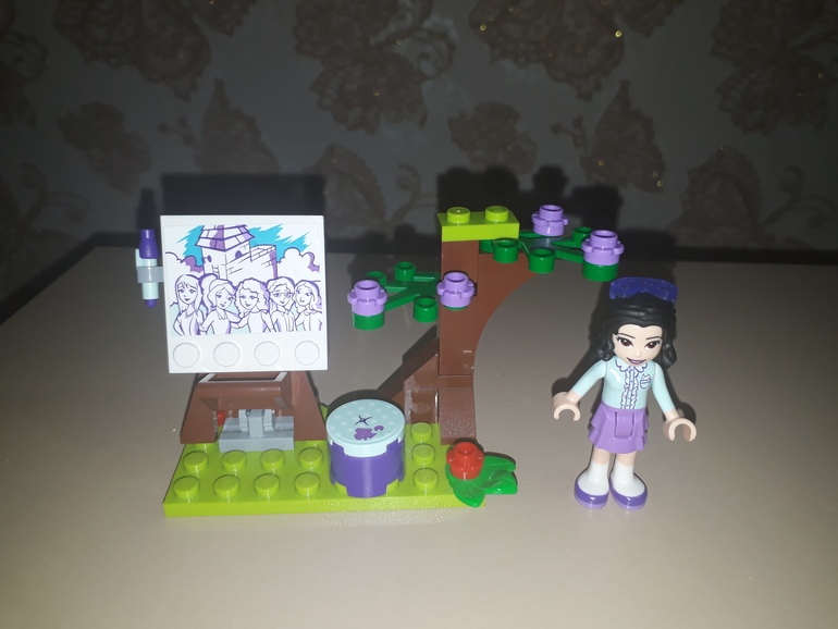 С передней части домика можно встретить валик и баночку с фиолетовой краской