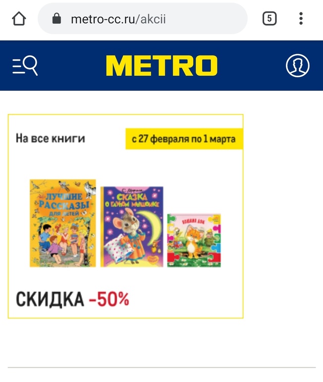 Какой-то сезонный книжный сейл🤣. Сначала на вб мешками выносили. Потом лабиринт. Читай-город вчера расщедрился... на этом фоне, может, 50% в Метро и смотрится не очень, но у них обычно честные цены и скидки, выбор, правда, скудный. Если под категорию книг у них попадают тетрадки Гакен - тогда их надо брать. Еще айрис-пресс у них раньше были книги, выгодно можно было б взять. А так наличие по сайту можно посмотреть.
