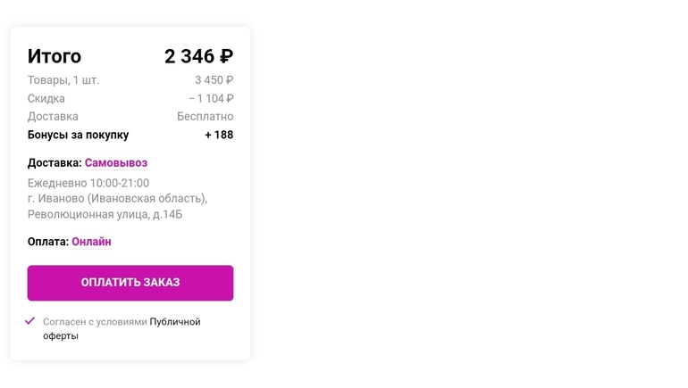 Кладём в корзину, чтобы оформить, выбираем оплату онлайн и... Цена не меняется.