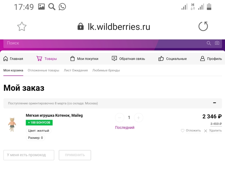 В чем проблема? Акция фейковая? Это глюк? А может проблема в том, что в личном кабинете у меня уже есть некая сумма денег и ВБ, автоматически списывая оттуда средства, не считает это оплатой онлайн? Если так, то это просто тупость. Ведь карточку мне сайт ввести не предлагает.