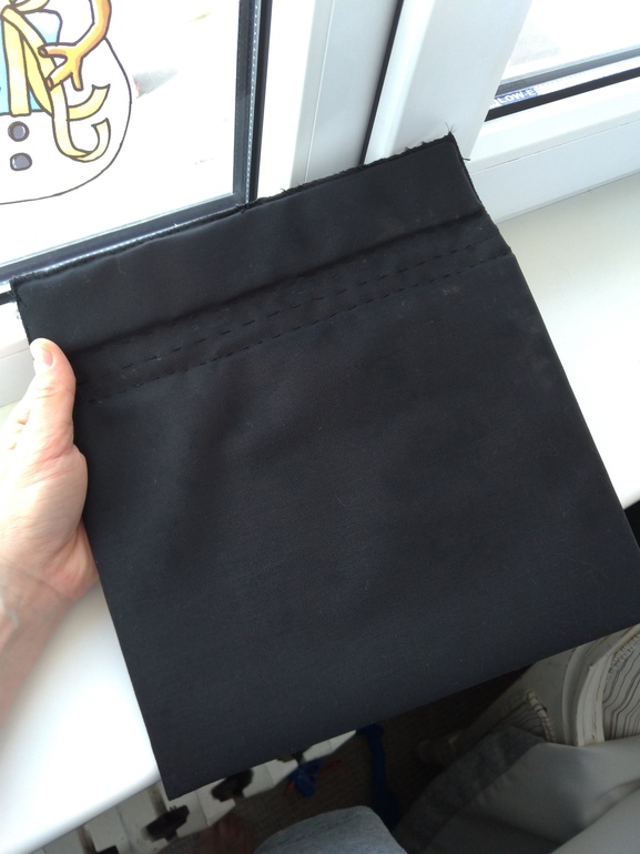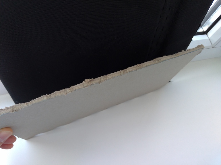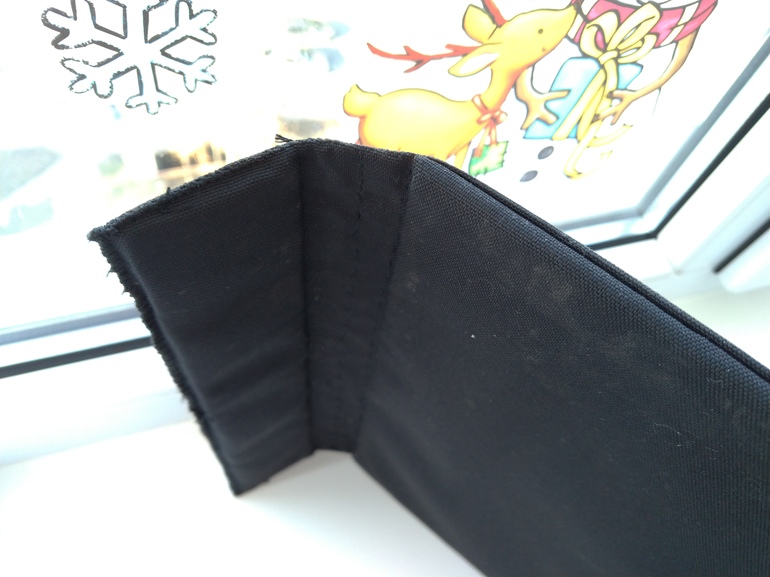 Смотрела и так, и в собранном виде, поэтому пришлось учесть место сгиба, там просто прошить, и вшить еще кусок картона поменьше. Получилось даже лучше, чем предполагала. И главное, что работает прекрасно, закупаюсь без проблем.