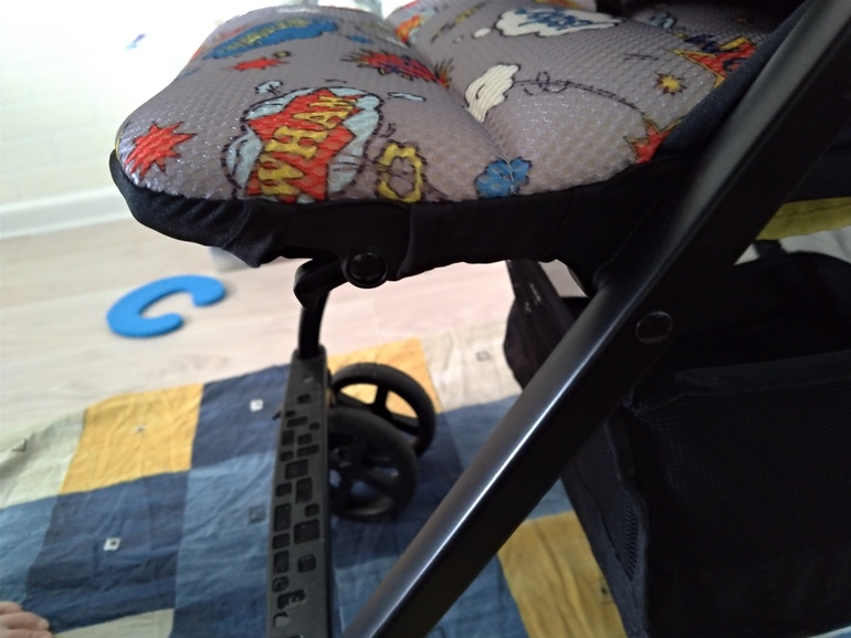 Теперь мне нужно удлинить подножку. Есть универсальный удлинитель с али, но он шире, чем надо, и длиннее, чем надо (2/3 длины от него использую). Хочу не от пахового ремня, а от самой подножки прикрепить, чтобы ее угол можно было регулировать. Хотелось бы бампер не задействовать, а раму - можно. Думала широкой резинкой прикрепить на месте сгиба сидения и подножки. А дальше как лучше? Может, кто-то делал?