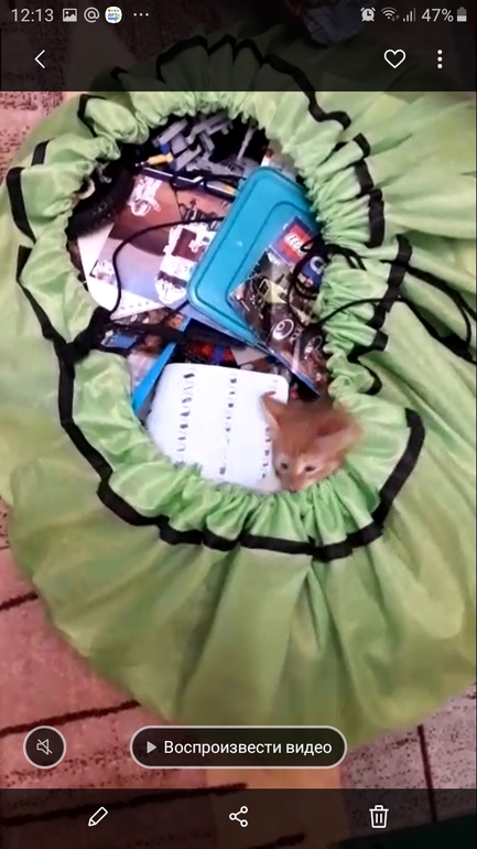 У нас вот такой мешок добра, которое у сына живность тырит и в зубах уносит как добычу