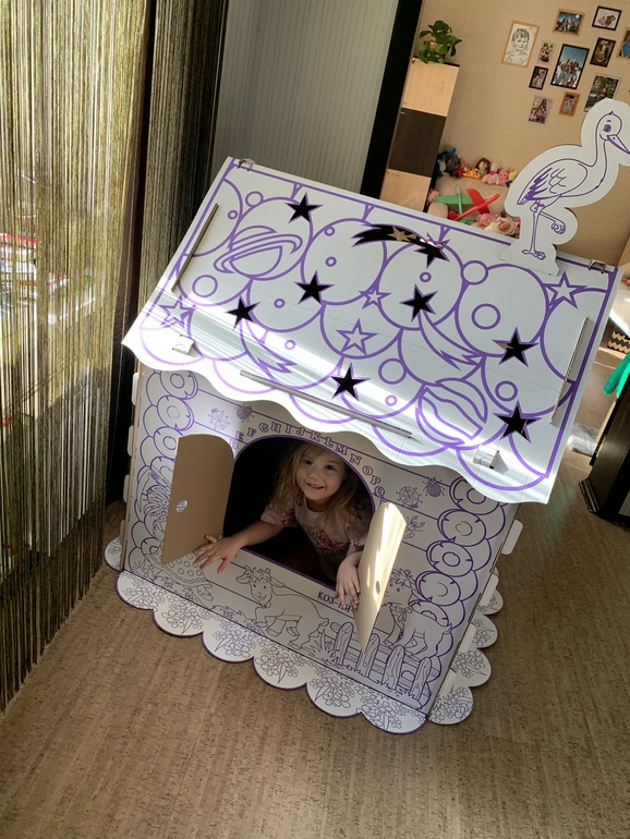 Я за такой вариант: и домик тебе, и раскраска. У нас уже второй) первый отслужил года полтора, но уже и раскрашен весь был, и кошкой поеден) супер-вещь