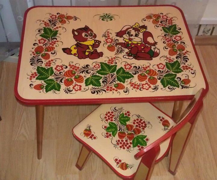 Мне очень нравятся хохлома деревянные стул и стол. Такие устойчивые, стол так стол! Стульчик очень удобный.