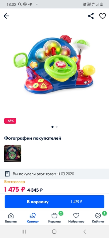 На озоне хорошая цена -1475. Сегодня забрала - мне понравилось. Моргает-шуршит-рычит. Маленьким мальчикам должно понравиться.