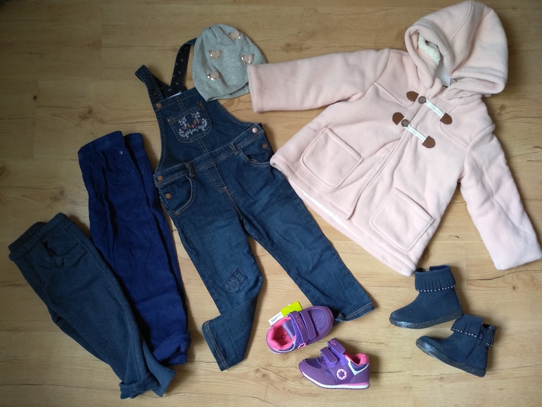 При желании, можно обойтись одной ветровкой с флисовой поддёвой и джинсами на подкладке. Но в возрасте 1,4г я бы смотрела комбинезоны (ветровочные, софтшелл) или хотя бы штаны с грудкой (полукомбинезоны). Постоянно спина оголяется в штанах, меня напрягало поправлять куртку и натягивать штаны.