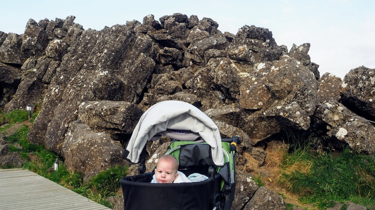 Но можно и люльку конечно, с младшим у нас уже сразу был Боб и докупили люльку, она тоже не сильно дорогая - 100 евро где-то, но нужен еще перходник, это еще 30 евро. Но люлька удобная там - ребенок может лежать на животике и глазеть по сторонам. Вот младший в том же возрасте примерно)