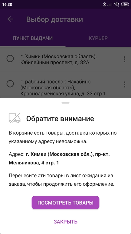 У вас будет курьерская Доставка просто вы также можете забрать самовывозом из магазина который вам предлагают, а в химках значит не работает сейчас пункт выдачи