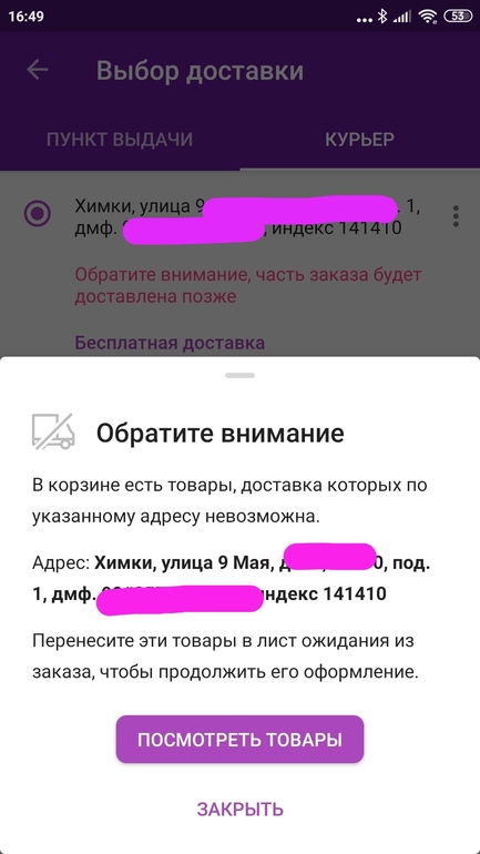 Меня смущает что пишет о том, что невозможно доставить некоторые товары, которые все на самом деле. Боюсь закажу, а меня отправят в Куркино.