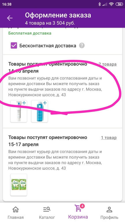 Может потому что Вы выбрали бесконтактную доставку, попробуйте убрать там галочку 🤷