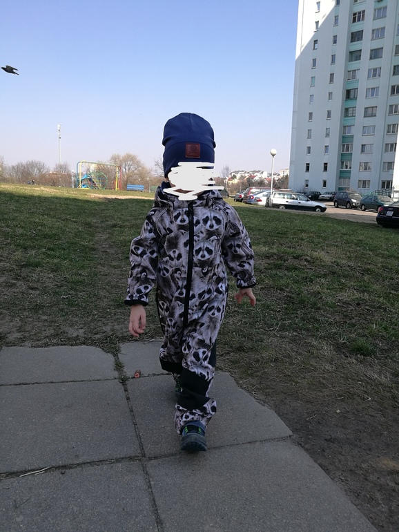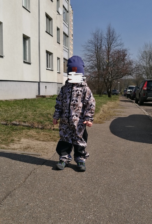 Вот тут рукава подвернуты, потому что резинка широкая и ребенку на пальчиках рукав мешает ещё, но если за беговел держится, предположим, то с подвернутыми рукавами запястье голое