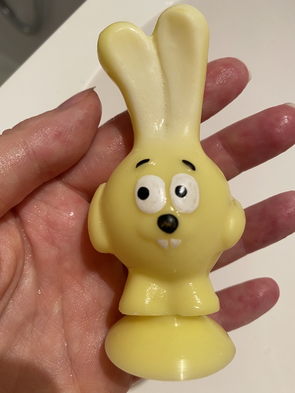 Есть у нас такая игрушка-прилипала. Откуда взялась- не знаю😂 Но у ребенка это хит. Заяц прилипает то в ванной, то к игрушкам пластиковым, то к столику для кормления, и это вызывает неописуемый восторг уже месяц и безуспешные попытки отодрать, что тоже дико весело. Ну и уши грызутся нон-стопом.