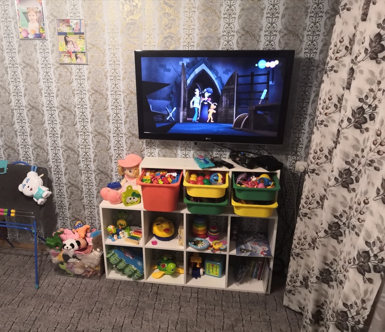 Так как игрушек у дочери немного (ввиду ее интереса к игрушкам в принципе) подумала, что "Фридлев" из 8 ячеек и маленького "Труфаст" будет достаточно. С Икеей я не дружу от слова совсем, этот магазин открыла для себя 2 месяца назад, когда покупала дочке стул "Урбан" (шикарная вещь). Когда смотрела на сайте систему хранения "Труфаст", в готовом варианте мне не понравилась цветовая гамма пластиковых контейнеров(либо белые, либо чёрные), и я решила заказать отдельно каркас и контейнеры разного цвета. И все бы ничего, но при заказе я перепутала размеры (у меня так всегда, когда заказываю через интернет, не имея возможности посмотреть товар "в живую").По итогу каркас крошечный, а контейнеры в двое больше, и выпирают за край каркаса. Блин, так расстроилась. Получилось вот так(фото под кат). Скажите, очень плохо смотрится!? Я не нашла ни одного варианта, кроме как поставить "Труфаст" на Фридлев". Со временем думаю поменять либо каркас, либо контейнеры. Или докупить и то, и другое, чтобы было два" Труфаста". А может вообще не стоит ничего менять!? В принципе, меня более менее устраивает, контейнеры держаться хорошо, игрушки в них лёгкие, т. е. они не перегружены. Единственное что, все на виду. Что посоветуете? Как быть?
