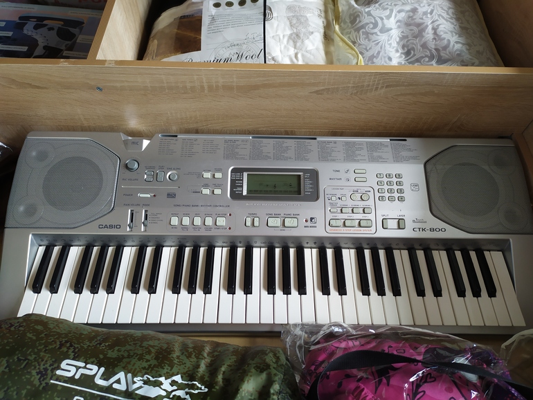Вот мой) валяется под кроватью. Обратите внимание на количество октав: хотя бы 5 должно быть. В моем куча функций, но я ничем почти не пользуюсь. И подумайте сразу, нужна ли стойка и пюпитр. У меня пюпитра нет, очень неудобно. Стойку тоже так и не купила, на гладильной доске играю. Все остальное лично для меня не принципиально.