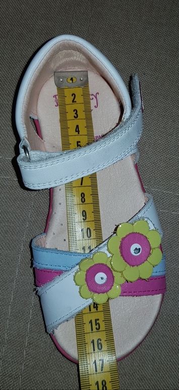 У меня не сандалии, а туфли кожаные, у дочки ножка 16 см, стельку не мерила, но в 26 запас есть, точно на лето и осень хватит