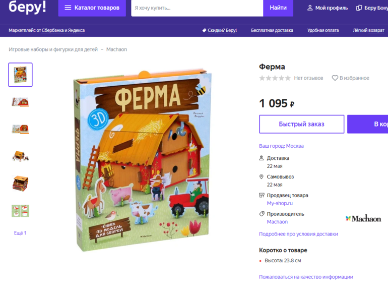 Махаон Ферма (книга + 3D модель для сборки) на ягодах