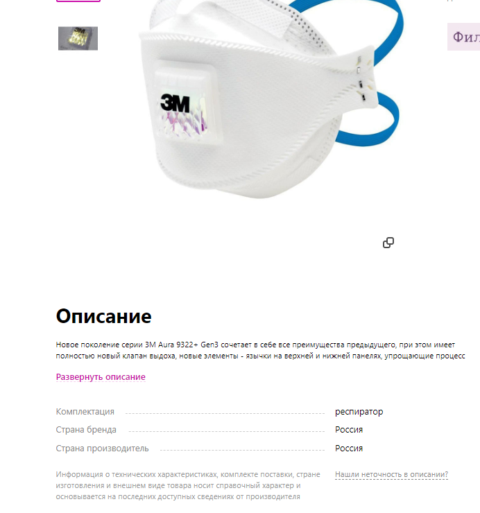 У 3М есть производство в России, скорее всего, это и имеется в виду) что производят их у нас. Ffp3 надо и ещё пластиковую защиту на все лицо желательно, их тоже много на вб