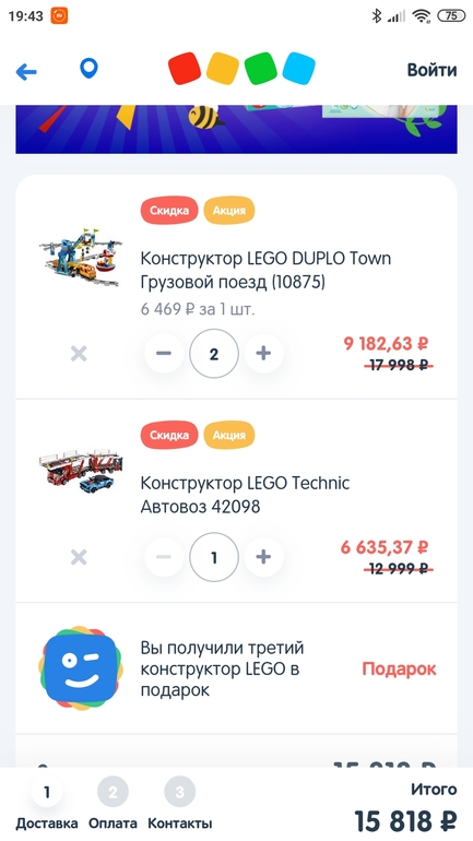 я дешевле 4300 не видела. это на озоне была акция. тоже скидка и плюс акция 2/3 что ли. помню так же выходил. это осенью было. я тогда так пожалела. можно было один выкупить. но вот в дет мире акция.