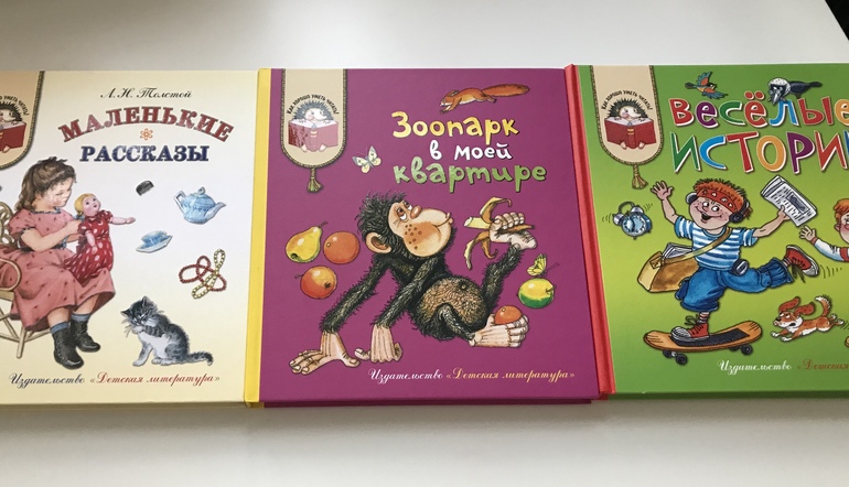 Лучше отталкиваться от того, какая тема интересна ребёнку. В первой книге крупные буквы (первая часть) и совсем коротенькие рассказы. Дочка отказалась сразу читать книги с делением на слоги, говорила, что они только сбивают ее и мешают читать. Буквы нравятся крупные. Дональдсон и сейчас читать ей сложно, хотя скорость чтения норм