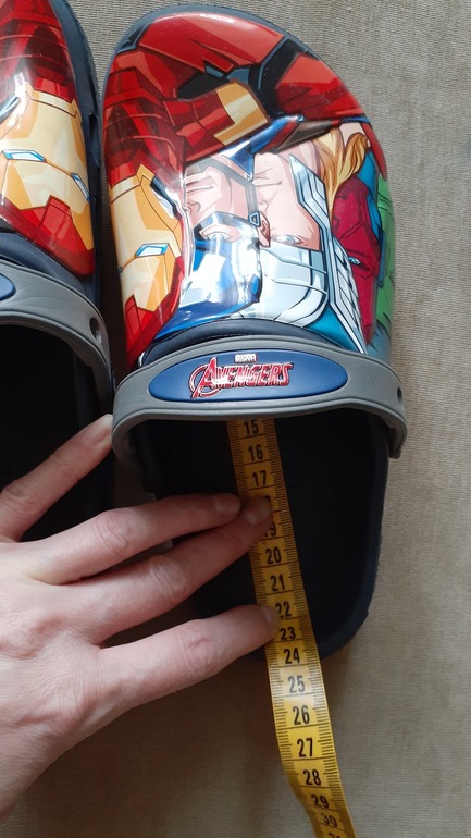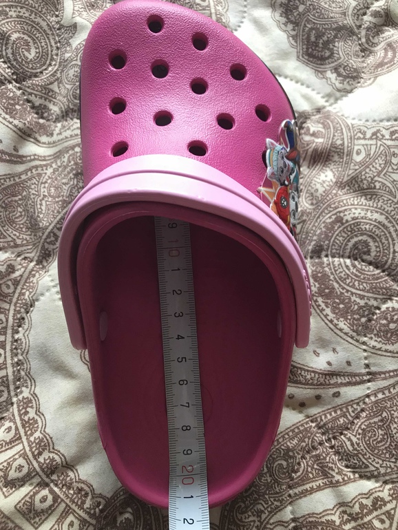 Могу измерить Крокс такого же размера с другим рисунком. У дочери тоже узкая нога, но пока ходили в них только в соляную пещеру, ей было удобно. Хотя внешне смотрятся громоздко, есть такое дело.