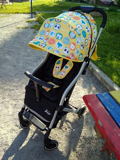 Весит Familidoo всего 5,2 килограмма, складывается быстро, книжкой, нажатием клавиши на ручке. Нести ее удобно, для этого предусмотрен специальный ремешок.