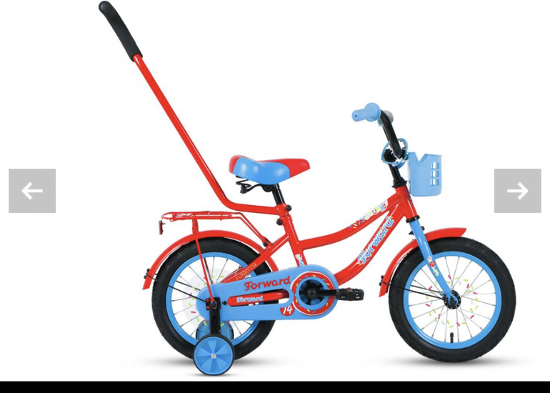 у дочки такой, ручку и все другие модные штучки докупили там же отдельно. По факту было очень удобно с такой ручкой, когда она кататься училась, сиденье велосипеда немного приподнимали и туда ее прикручивали, нам помогли, сразу в магазине её прикрутили и дочь уже сидя на нём "доехала" до дома, она педали пыталась крутить, а я ее за ручку подталкивала, сам велосипед тяжелый, но за счёт этого более устоичивый по моему мнению, ни разу на бок не заваливался, даже если дочь съезжала случайно куда-нибудь в кусты. Проблемно мне было в лифт зайти, т.к. эта ручка мешала, но у нас в доме нет грузового лифта. А так я даже сумку с игрушками на эту ручку привязывала. На очень длинные расстояния мы не ходили. Максимум доехать до разных детских площадок а там уже дочь слезала и играла просто так. Кататься научилась и ручку сняли совсем