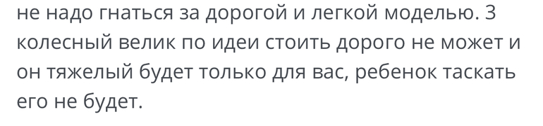 не надо гнаться за дорогой и легкой моделью. 3 колесный велик по идеи стоить дорого не может и он тяжелый будет только для вас, ребенок таскать его не будет.