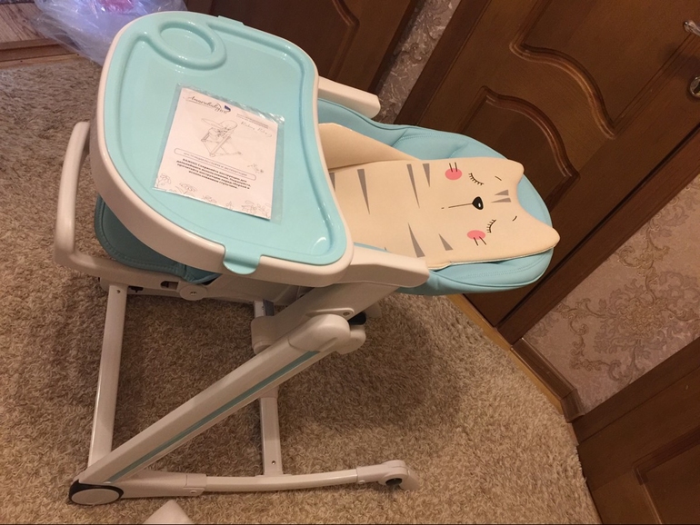 Ребёнку пока месяц. Уже используем, могу ее туда ненадолго положить, если я на кухне что-то делаю. Пока про минусы рано говорить, но то, что он менее громоздкий и мыть его будет легко, это уже видно. Он устойчивый. У меня старшая как-то в него залезла, ну так решила испробовать, а ей, кобылке, на минутку уже 8 год 😂 ничего с ним не случилось. Со старшей у меня был хваленый татамия, ну это огромный неподъёмный танк. Его даже по квартире катать было неудобно, потому что он огромный, стоял только на кухне у меня, ну и когда пришла пора и ребёнок стал размазывать пюре по всем поверхностям, которые он видит, вот тут то я взвыла, ибо все в этом стуле забивалось в швы и хрен его отмоешь.