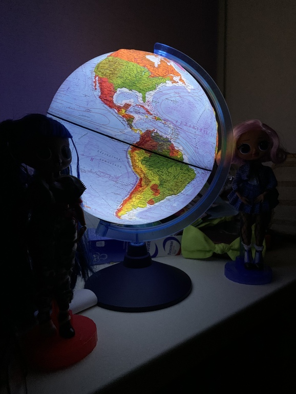 Глобус светится в темноте и на телефон устанавливается приложение. Детям очень понравился.