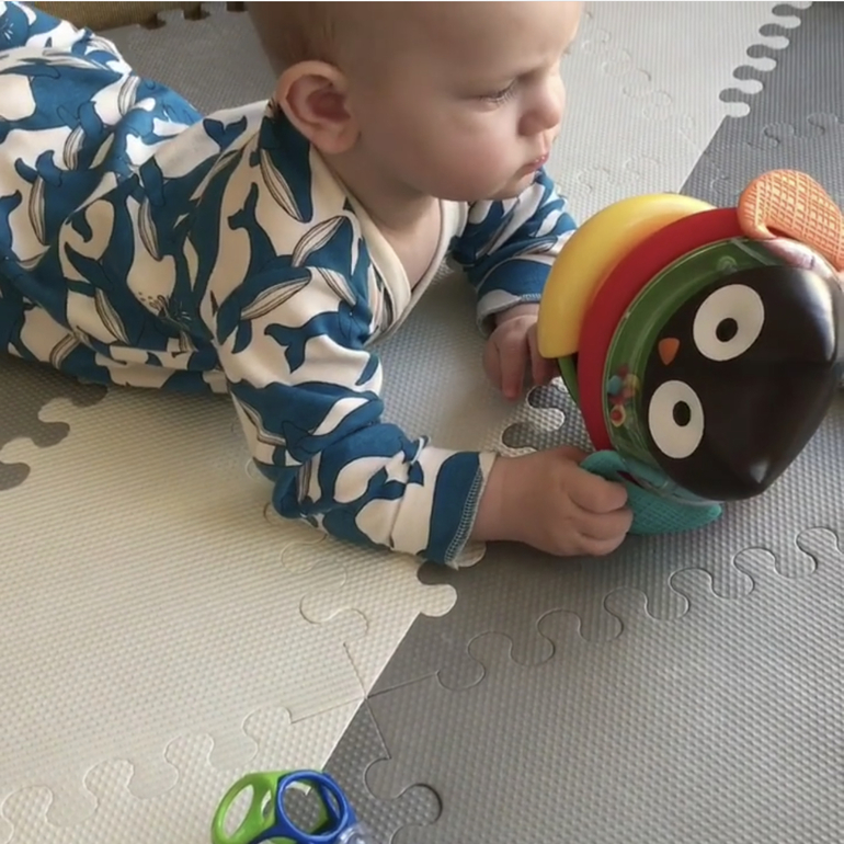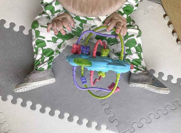 В 9 мес оч любил игровой развивающий столик. Там всякие крутилки, рычажки, пианино, кнопки и тп.