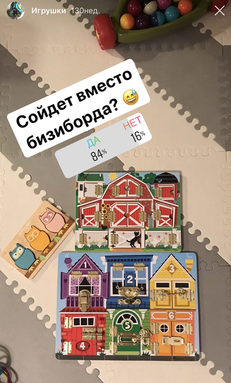 Моей почти 10 ,все что не покупаю буквально на пару минут и больше не интересует . Больше нравится тянуть в рот пакеты ,ложки ,провода и тюбики от крема ...) Стараюсь больше гулять с ней в парке ,собираем камни ,цветы и все что попадётся под ручку ))
