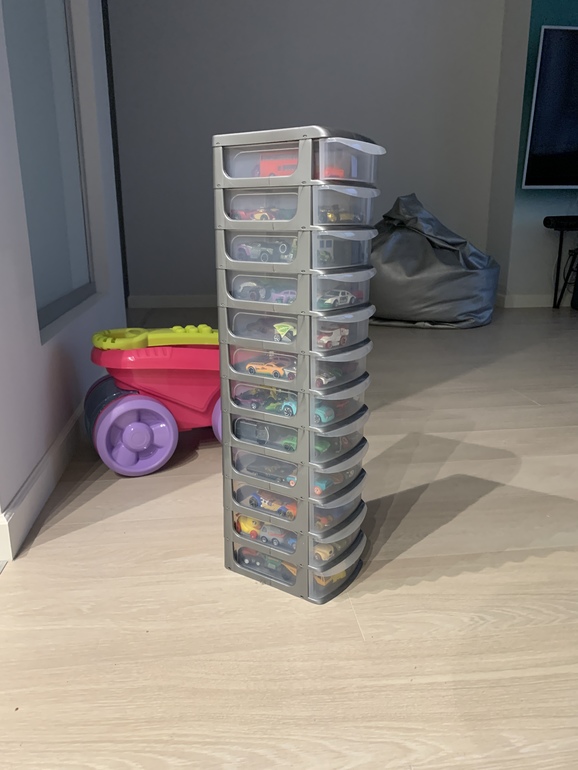 Мы не фанаты, я вот только сегодня кпила два трэка)) пока играют, пусть стоят собранные, потом уберу обратно в коробки. Если дальше будет больше, то просто буду один убирать по коробкам, другие доставать. Я вообще любитель все в коробках хранить, ибо потом продаю с ними же.